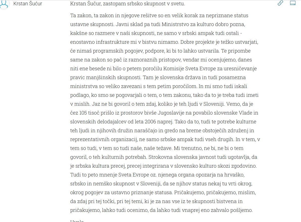 Na sednici Saveta za pitanja manjina u Sloveniji, predstavnik srpske zajednice Krstan Šučur izneo je niz zapažanja o položaju zajednice i njenim izazovima.