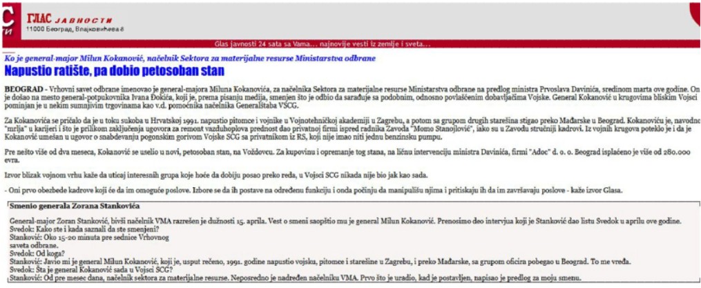 (Факсимил дела текста из дневног листа „Глас јавности“, објављеног почетком 2000-их, који се односи на догађаје из 1991. године.)