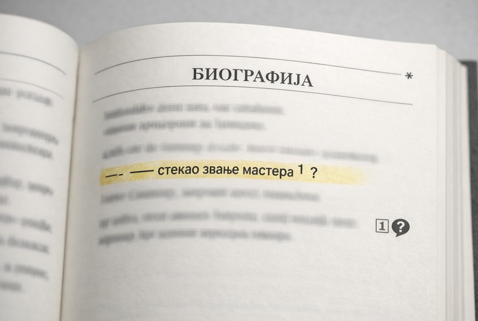 У овом случају, ти подаци нису наведени. Информације о образовању дате су без временског оквира и без програмског контекста, при чему се у једној реченици помињу различите институције, које су деловале у различитим организационим и акредитационим фазама. Такав образовни пут није немогућ, али без додатних појашњења остаје нејасан.