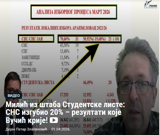 У ексклузивном интервјуу за Србин.инфо, председник Извршног одбора Покрета Сабор Добрица Милић директно из Аранђеловца, где је био у изборном штабу Студентске листе, дао је детаљну анализу локалних избора 29. марта.